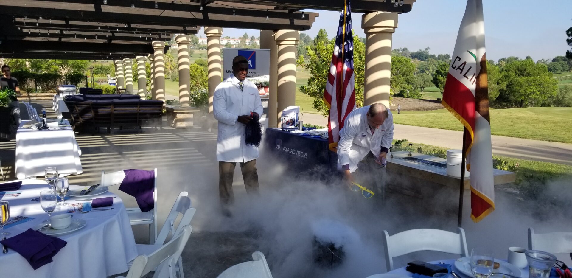 The Chamber’s monthly meetings are usually indoors throughout the year, so members were happy the weather was nice enough to host the breakfast outdoors on the patio. While members ate, Chamber members Rod Robertson and Rob West from Sub Zero Nitrogen Ice Cream treated everyone to ice cream, which they made on the spot using liquid nitrogen. This isn’t your old fashioned ice cream. With an exciting burst of frigid gas, members saw nitrogen create a rich and smooth ice cream that tastes perfect.
